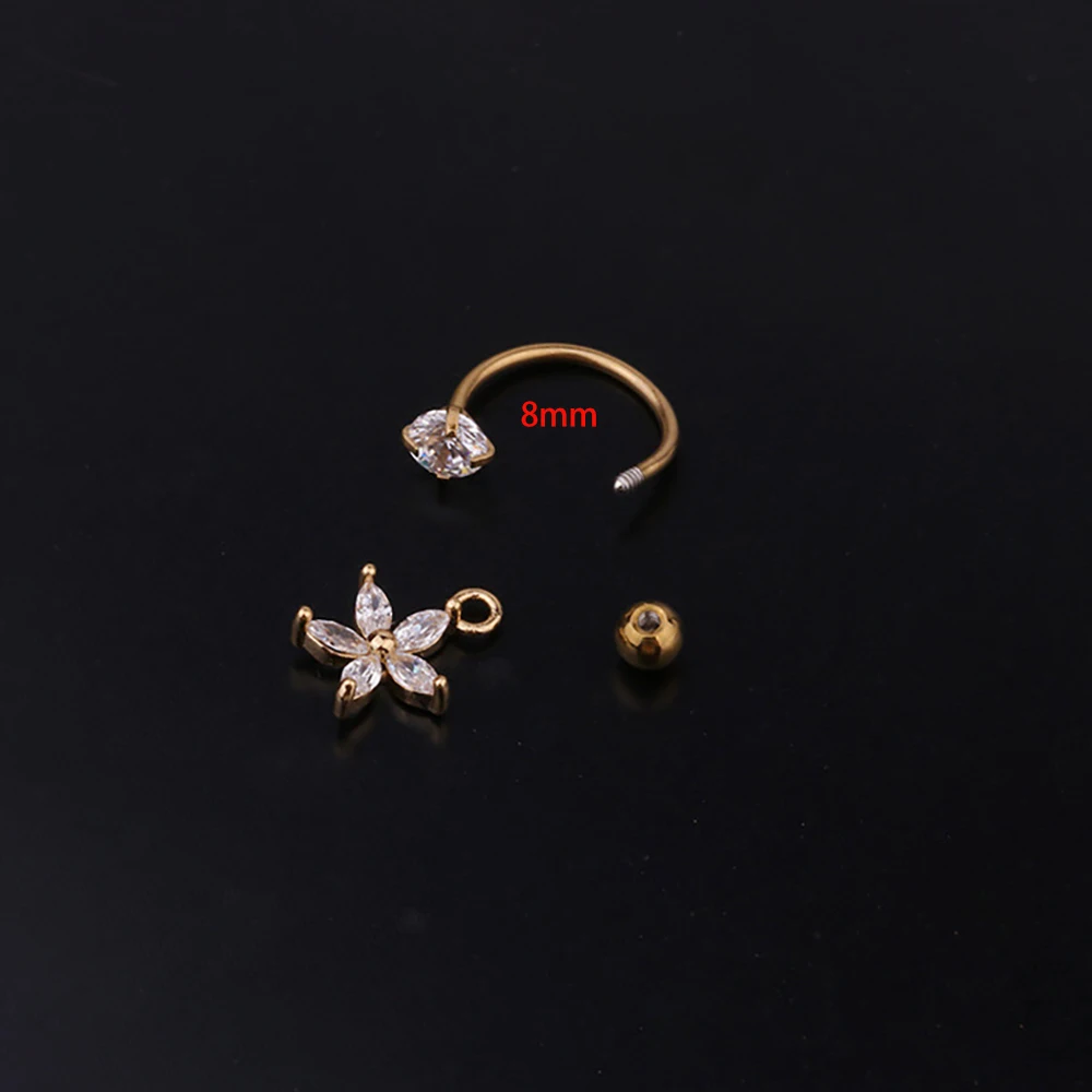 1 Pair Stainless Steel Mini CZ Drop Earring Women Moon Flower Tragus Cartilage Helix Hoop Conch Rook Daith Lobe Piercing Jewelry