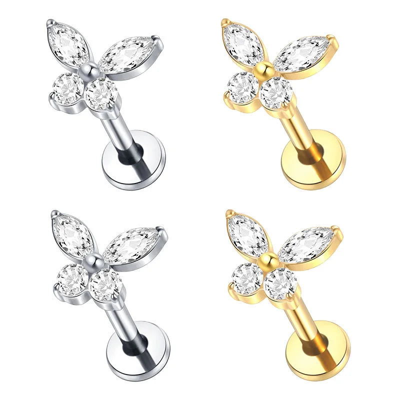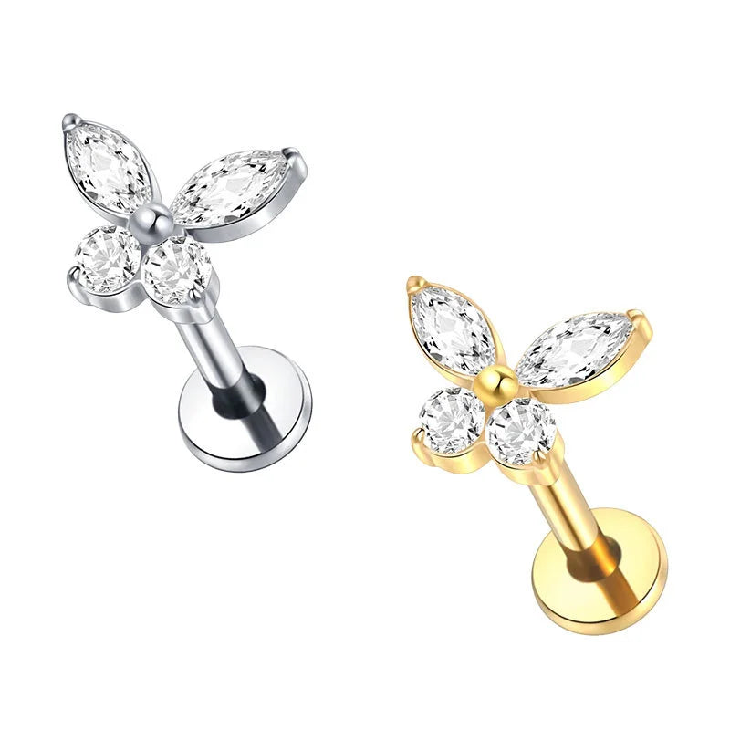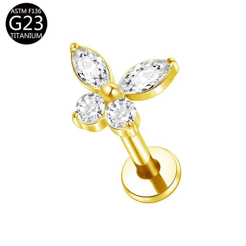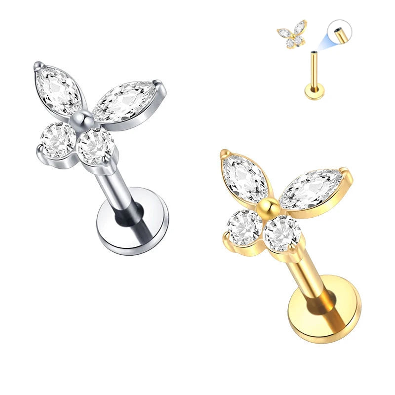 Apportez une touche délicate à vos piercings, un labret en titane G23 hypoallergénique orné d'un papillon serti de cristaux CZ étincelants. Ce bijou combine élégance, confort et sécurité, idéal pour sublimer vos piercings du cartilage, du lobe, du tragus ou du daith.