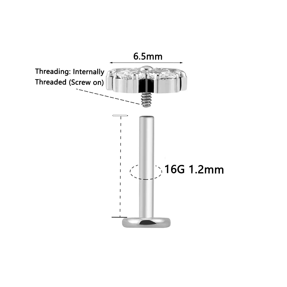 JT 1 Pcs F316 Titanium Alloy Fashion Exquisite Two-Color Zircon Flower Inlay Thread 16G Ear Stud Lip Nail Piercings Jewelry