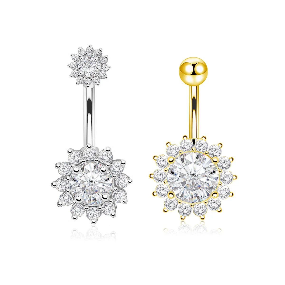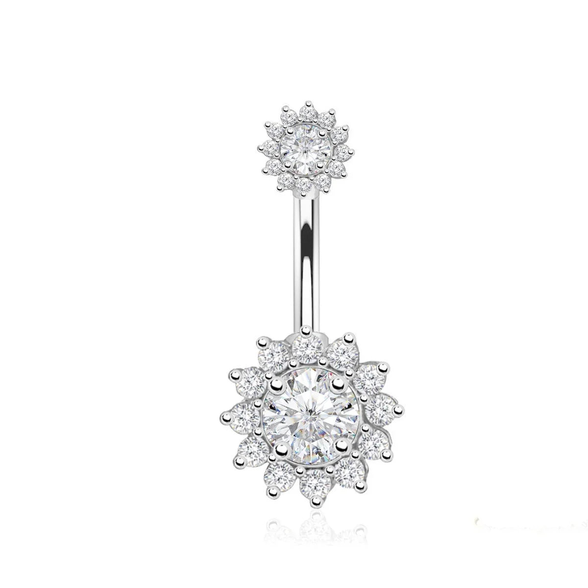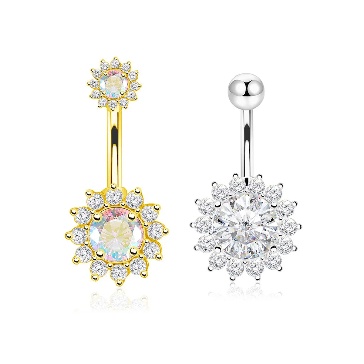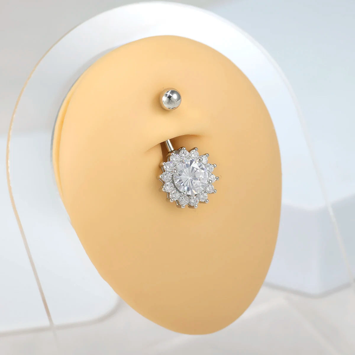 Ajoutez une touche radieuse à votre piercing du nombril, un anneau en titane de qualité médicale décoré d’un motif tournesol scintillant de zircons AB blancs. Conçu pour allier durabilité, confort et éclat, ce bijou sublimera votre décolleté avec élégance.