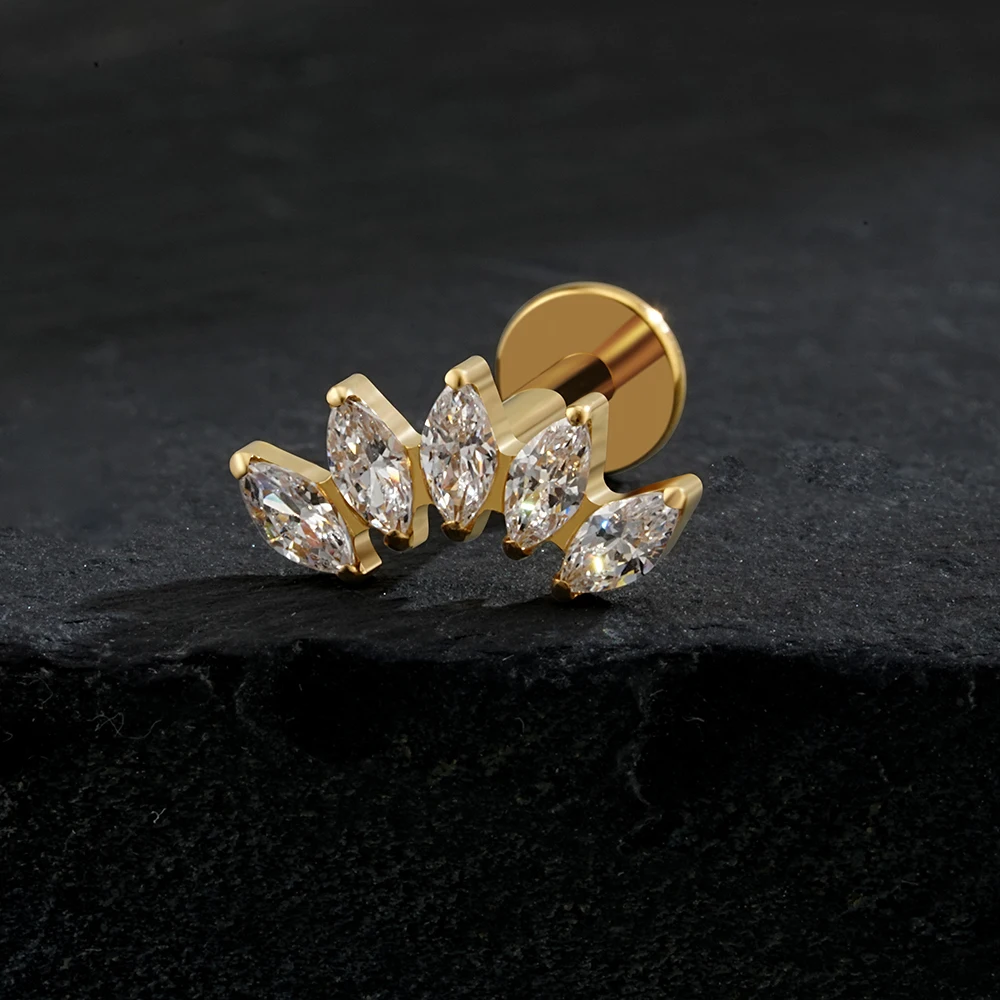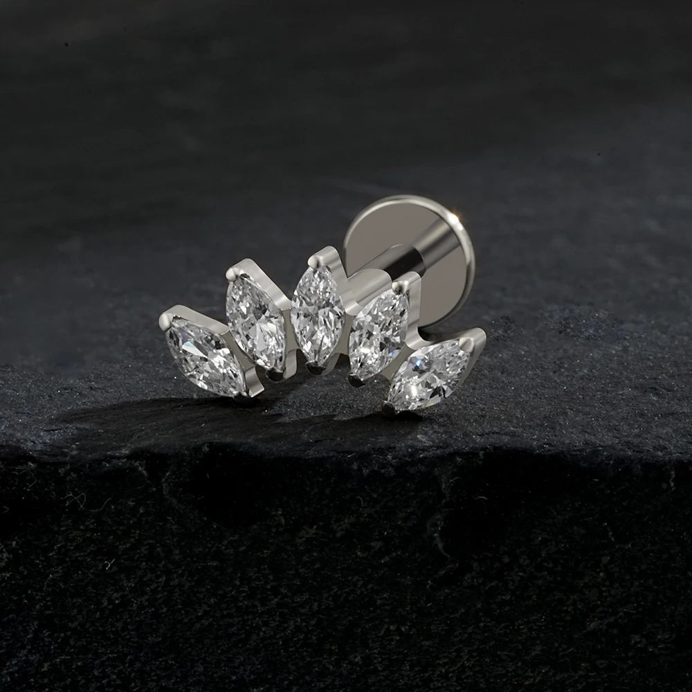 Right Grand ASTM F136 Titanium 5 Marquise CZ Crown Cartilage Earring 16G Cluster CZ Flat Back Helix Stud Nose Piercing Jewelry